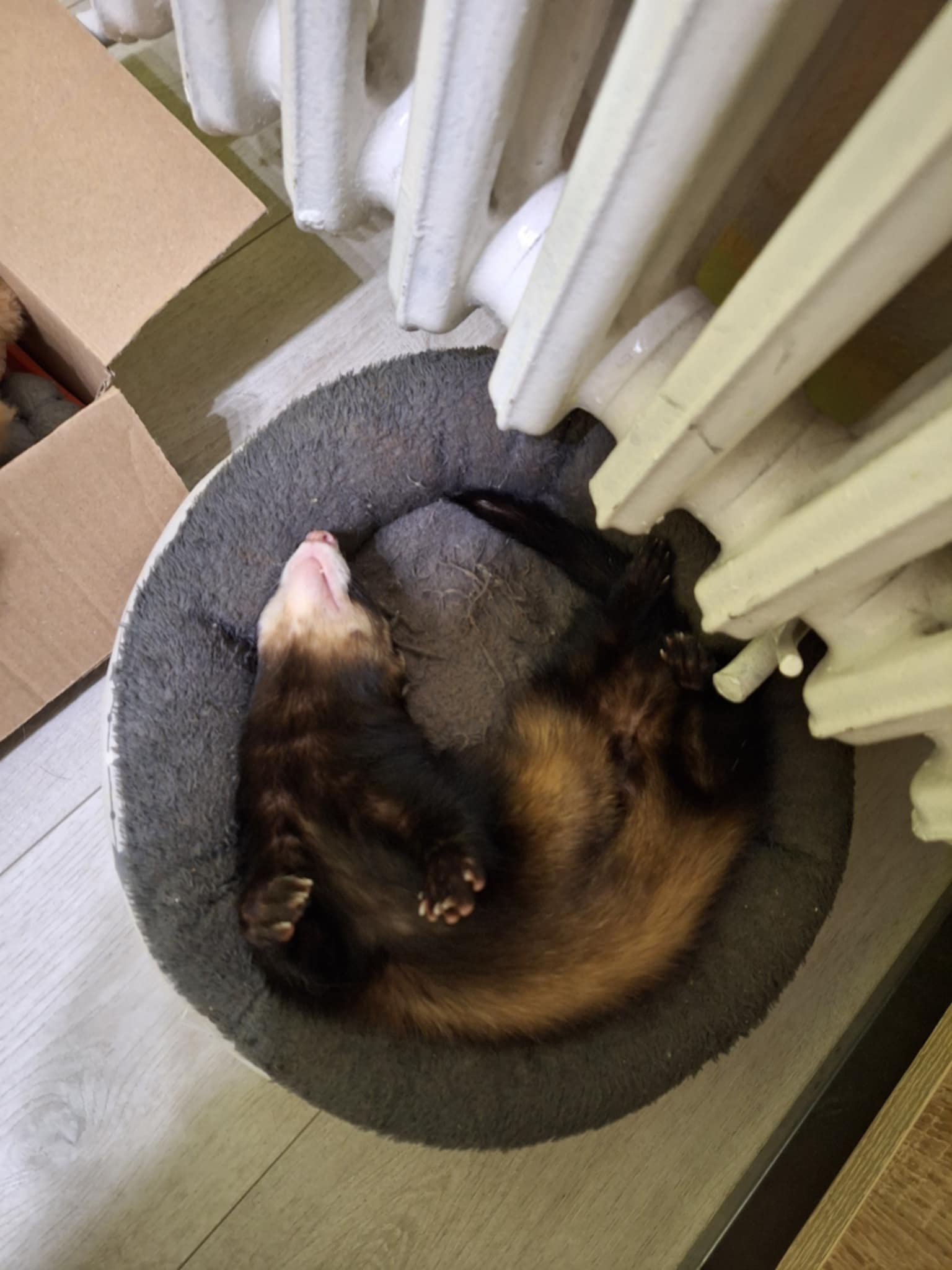 Ragnar hledá domov z důvodu sestěhování k alergickému partnerovi. Ragnar má však svou povahu a není to fretka pro každého. Začátečník nevadí, preferujeme ženu, ale samozřejmě nevadí ani odvážný muž. Nemám problém vyzkoušet nový domov "nanečisto". Je třeba počítat s nějakým časem na zvykání v novém prostředí s novým majitelem, nicméně někdy to prostě neklape a v takovém případě Ragnara vezmeme samozřejmě zpět a budeme hledat nový domov dál.